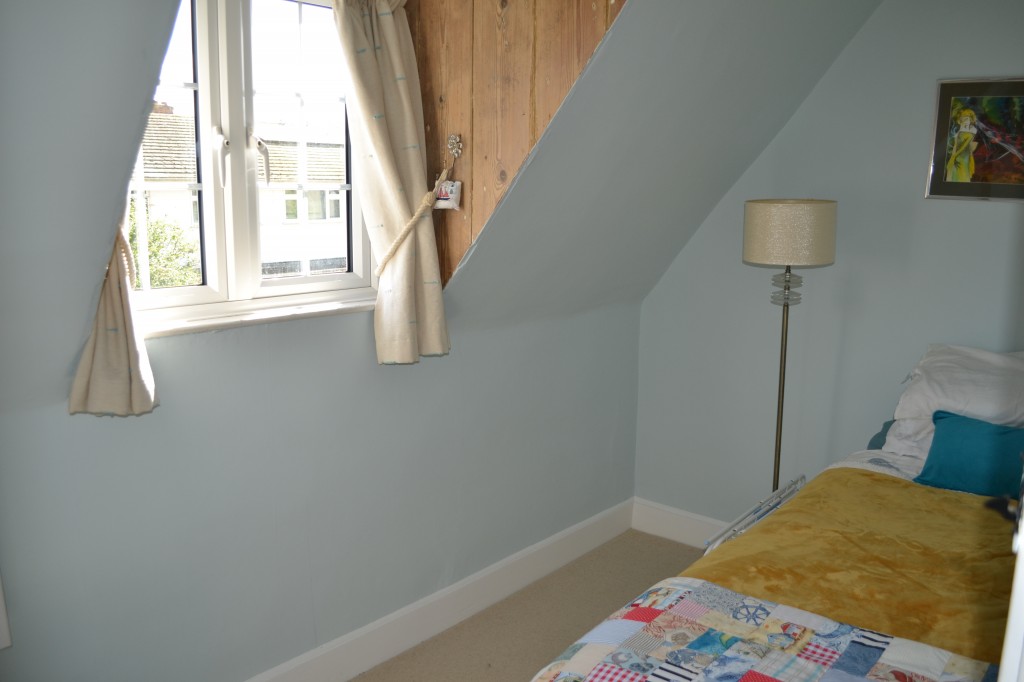 13’0 x 10’8 into eaves (3.96m x 3.25m into eaves). Built in cupboard, wall mounted electric heater.