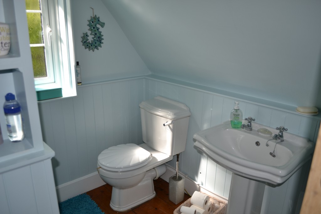 The accommodation comprises: kitchen opening into the dining room which in turn opens into the sitting room, there is a fireplace (at present fitted with a real flame coal effect gas fire). Upstairs are 2 bedrooms and a shower room. There is a sheltered and enclosed courtyard to the rear with a small cave like store built into the cliff face.