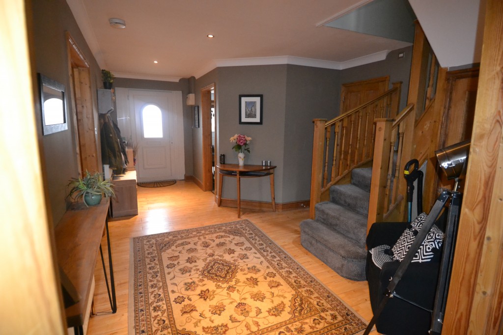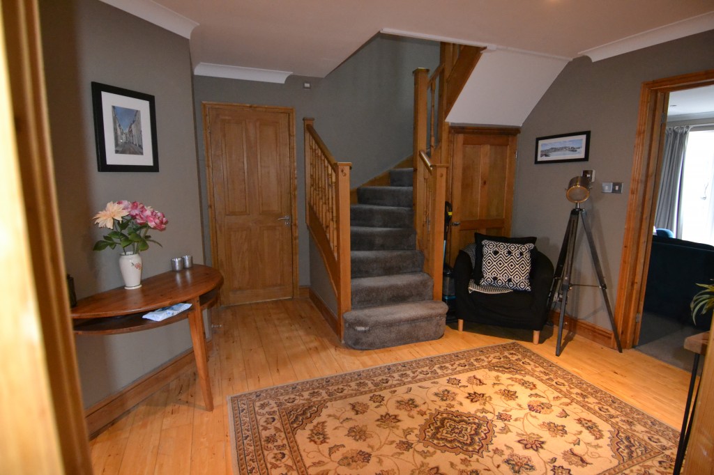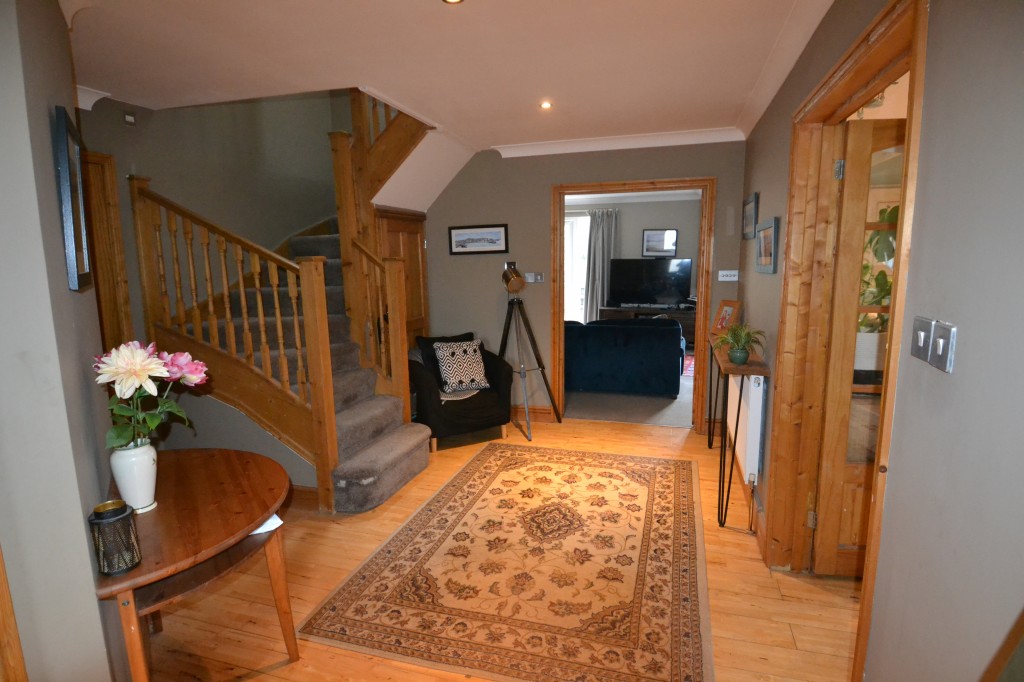 A lovely spacious hub of the home. Timber flooring, staircase to 1st floor, understairs cupboard, double radiator. Inset downlights.