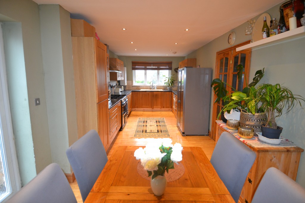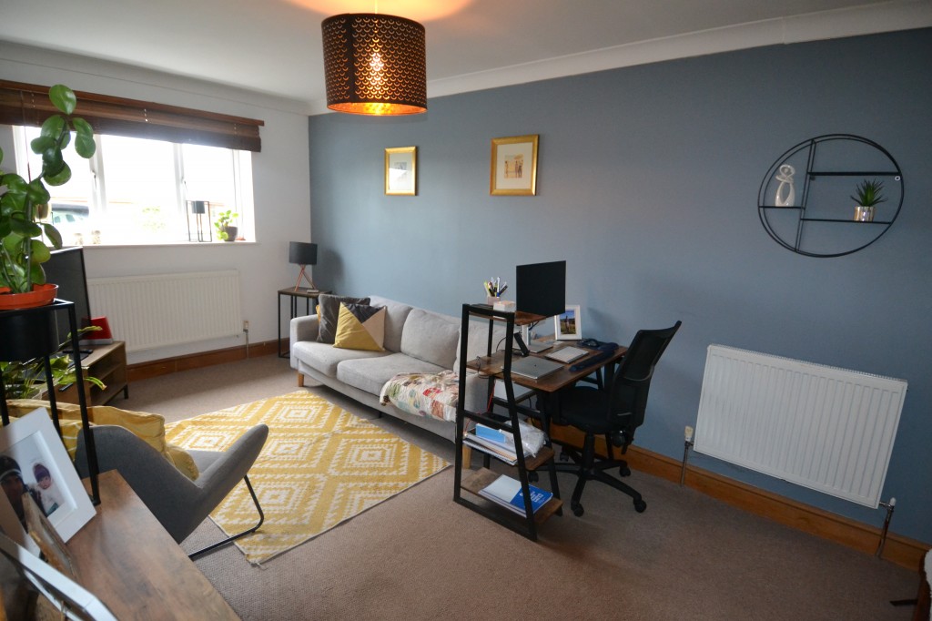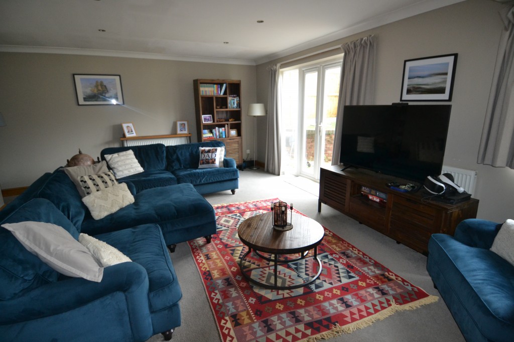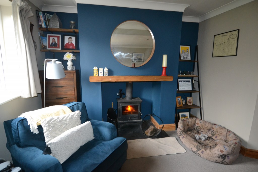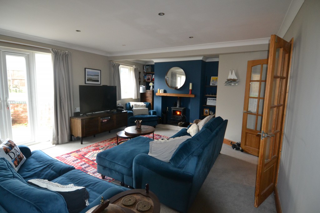 Glazed double doors out to rear garden. Fireplace with woodburning stove, 2 radiators. Inset downlights.