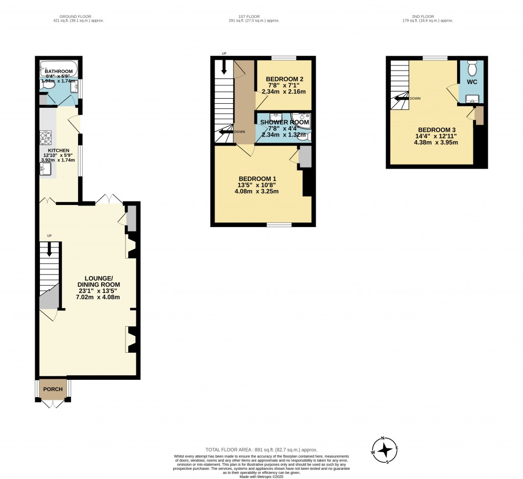 3 BEDROOMS (ONE WITH ENSUITE CLOAKROOM) SHOWER ROOM