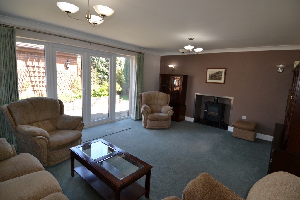 Double aspect with bay window to front and glazed double doors with matching side panels opening to garden, double radiator, fireplace with real flame log effect gas fire, 2 wall light points, TV point.