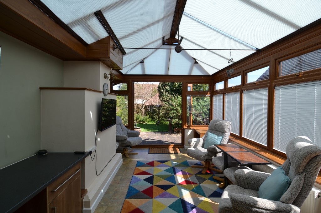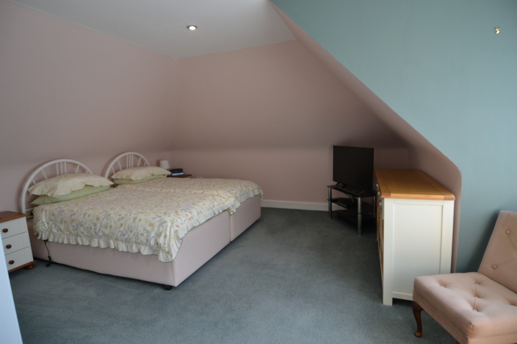 View over the garden, remote controlled roof blinds, built in cupboards, double radiator. uPVC oak effect double glazed windows and doors, double doors to garden.