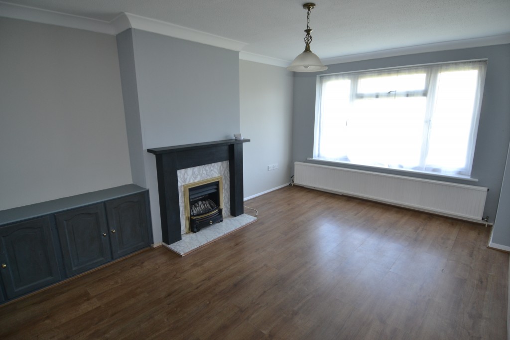 View to front. Fireplace with gas fired back boiler, built in cupboards, double radiator.